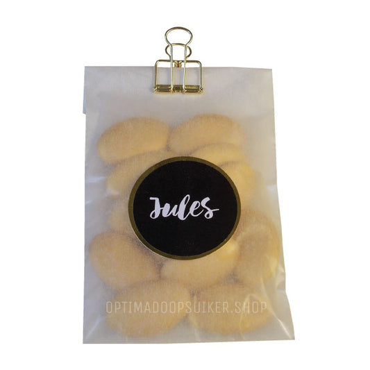 Kies een sticker of label en laat de naam of eigen ontwerp erop drukken. Op deze manier kan je jouw persoonlijkheid en stijl laten zien en de doopsuiker een bijzondere betekenis geven. Of het nu gaat om een speciale gelegenheid, zoals een doop, geboorte of babyshower, of gewoon om je gasten te verrassen, onze accessoires bieden eindeloze mogelijkheden voor personalisatie.