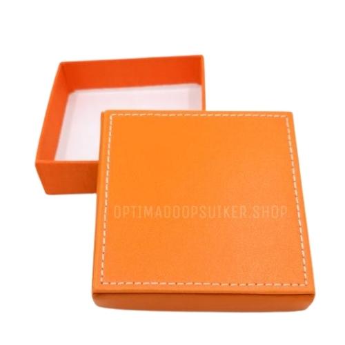 AanbiedingDoosje lederlook oranje - vierkant | OP=OP