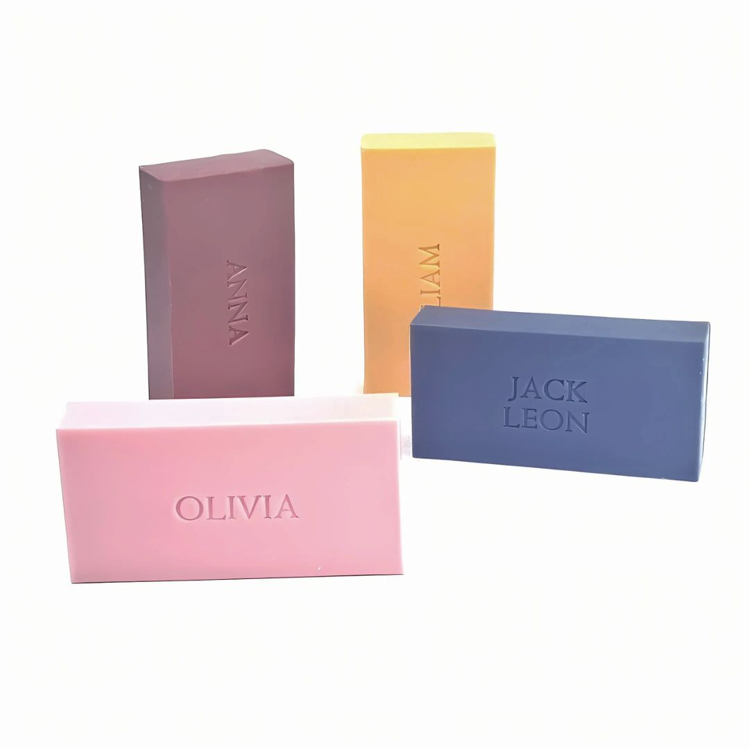 Een rechthoekig zeepje met naam zonder poespas, maar met klasse.