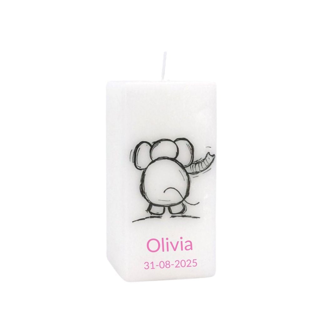 Een doopkaars maakt de doopviering extra bijzonder. Deze rechthoekige kaars is versierd met een schattig beertje in lijntekening en wordt gepersonaliseerd met naam en datum. Zo wordt het een uniek aandenken dat jarenlang een mooie herinnering blijft.